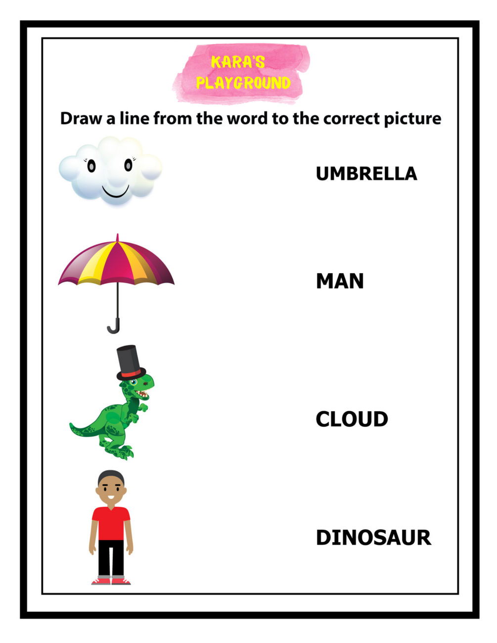 Guide your children in identifying the objects and drawing a line from the illustration to the word.